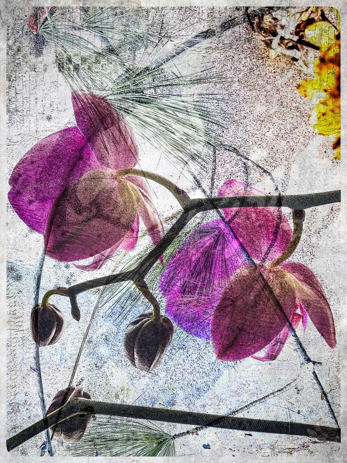 With this memorializing project, I draw on my long-time fascination with layers, abstraction, ambiguity and the natural world. The ever-renewing cycle of living and dying plants is a reminder of our limited time on earth and the importance of making the best use of it.
